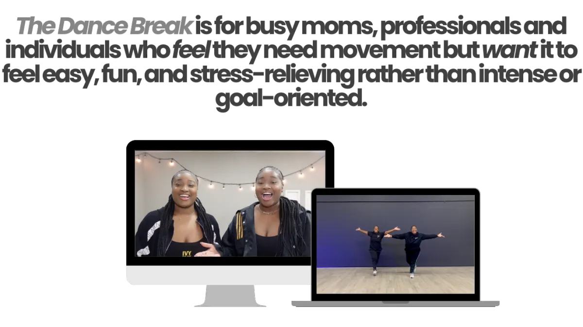 Busy life? Take THE Dance Break. Quick, fun, and energizing, it's your go-to for a mental reset through dance.